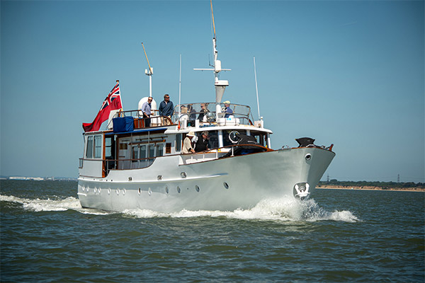 Seafin is a classic wooden motor yacht reserved for those who prefer to do their entertaining a little differently. She is the only charter boat on the Solent able to host up to thirty guests in this way – privately, generously and with genuine comfort – which makes her a rare proposition for both high-end private and corporate events. When you come aboard, Seafin is entirely yours; no shared spaces, no rotating departures, just your guests and your agenda on a yacht that feels more like an intimate members’ club than a commercial charter.